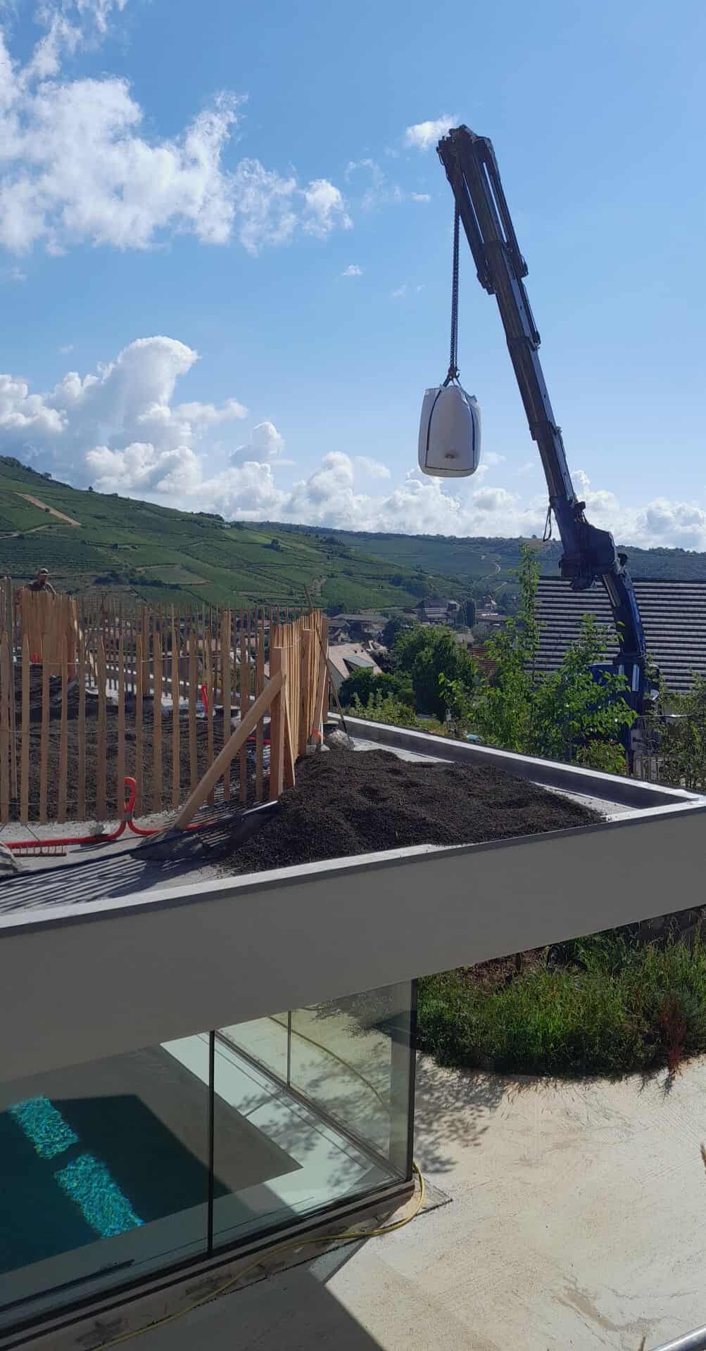 - Accès facilité même en présence de murets ou clôtures : la grue passe aisément au-dessus
